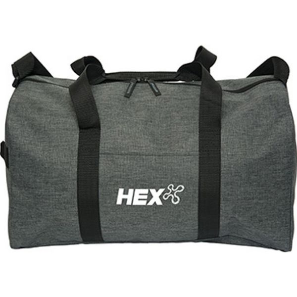 600D Heathered Polyester. Zippered closure to main compartment. Inner grey liner. Mesh pocket inside side gusset. Detachable/adjustable shoulder strap. Two carry handles. One side carry handle. Front open pocket. Packed in a non woven storage bag. Matches TO9338 tote bag. Price includes one colour, one location imprint.