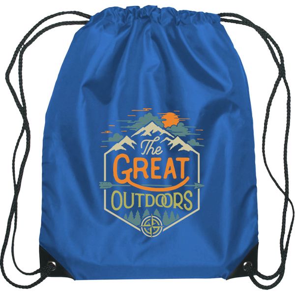 Made Of 210D Polyester With Contrasting Simulated Leather Reinforcement Black Trim At The Corners. Reinforced Eyelets. Drawstring Closure. Spot Clean/Air Dry. Price includes full colour imprint.
