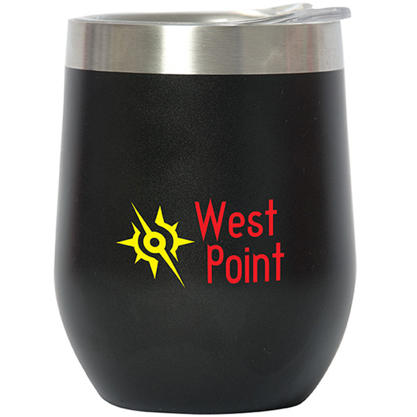 18/8 Stainless Steel. Double walled with vacuum insulation. Holds up to 350 ml. (12 oz.). Glitter matte exterior finish with silver trim. Clear Acrylic push on lid with sipper hole. For use with hot and cold beverages. Individually retail packaged. BPA free and FDA compliant. Price includes one colour, one location imprint.