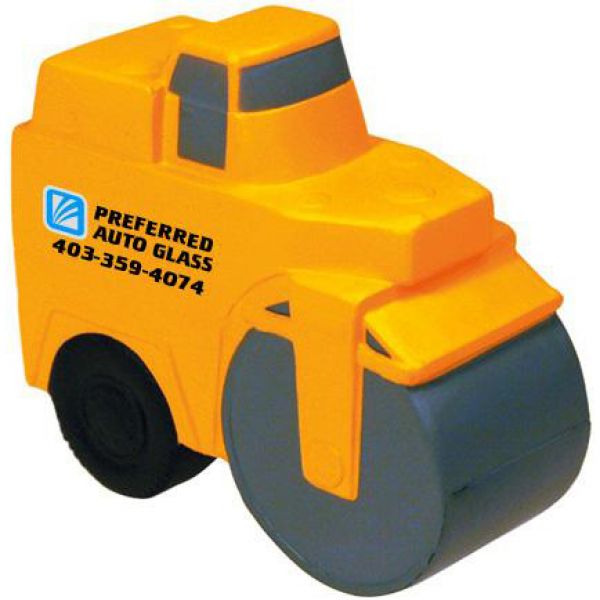 Custom stress ball - 1.5"x 3.5"- 0.1 lbs- in a steamroller shape. Promote your brand with this squeezable foam made of polyurethane material. In orange colour. An effective promotional brand. Imprint dimensions: 1.5" x 0.5". Price includes one colour imprint. Free art proof. A minimum of 150 personalized stress balls in 7 days of production. No hidden fees!
