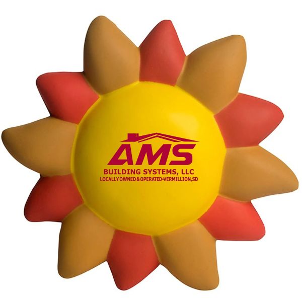 Custom stress ball - 4.5"x 4.5"- 0.1 lbs. Shaped like a sun in orange colour. Imprint your logo at 1.25" x 1.25" imprint area. Price includes one colour imprint. Free art proof will be emailed with every order within one business day. A minimum of 150 personalized stress balls in 7 days of production. No duties, no fees.