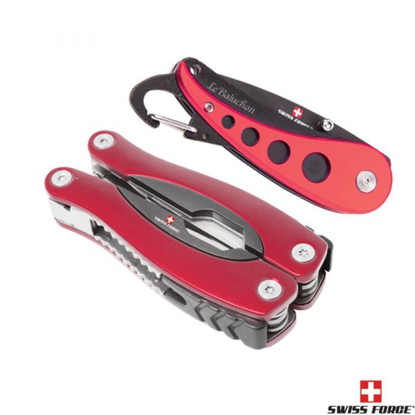 The ultimate gift set for the handyman. SFL770-13 function multi-tool. Superior stainless steel tools. Folds up for convenience and easy portable storage. Includes belt loop nylon pouch. SFY801-Black stainless steel anodize blade. Blade lock back function. Aluminum handle with belt clip. Price includes laser engraving.
