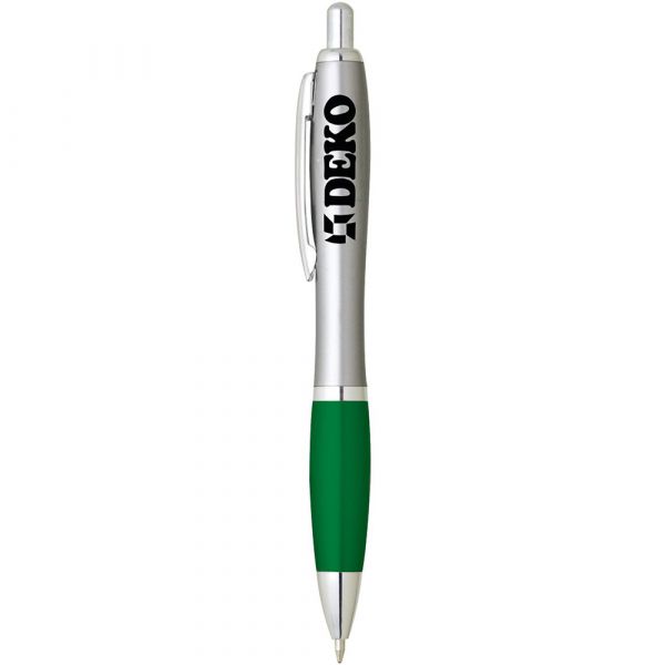 The Nash Ballpoint Pen features a retractable, ballpoint with a soft grip (except solid silver) in multiple colors.