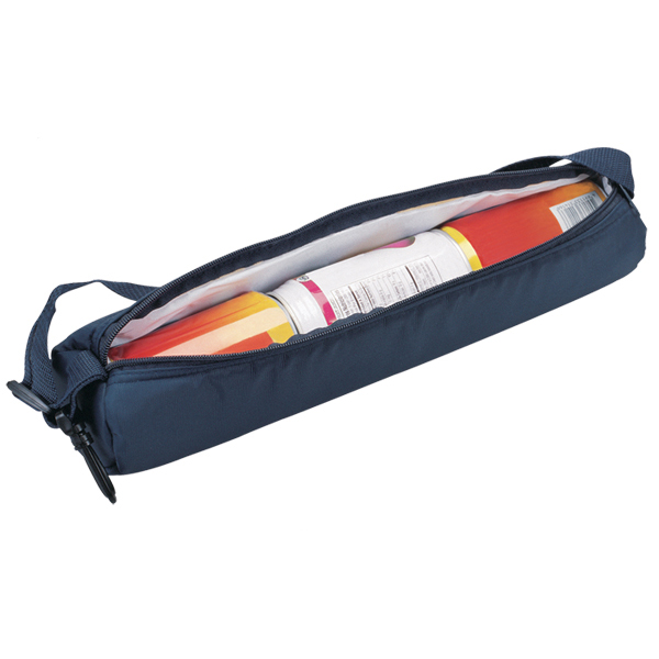 420 Denier Acrylic coated Nylon. Adjustable/detachable strap. Foam insulation. White PEVA liner. Full-length zipper opening. Plastic hook attachment for golf carts. Price includes one colour imprint, one location.