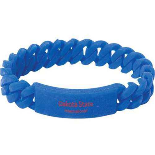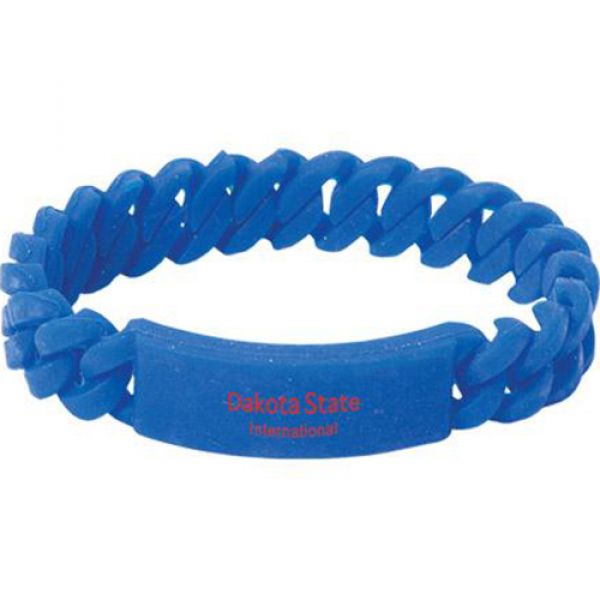 Silicone. A new twist' in Silicone bracelets. Made out of Silicone, but looks like a twisted chain. One size fits most. Use this bracelet to advertise your cause, message and raise awareness. Price includes one colour, one location imprint.