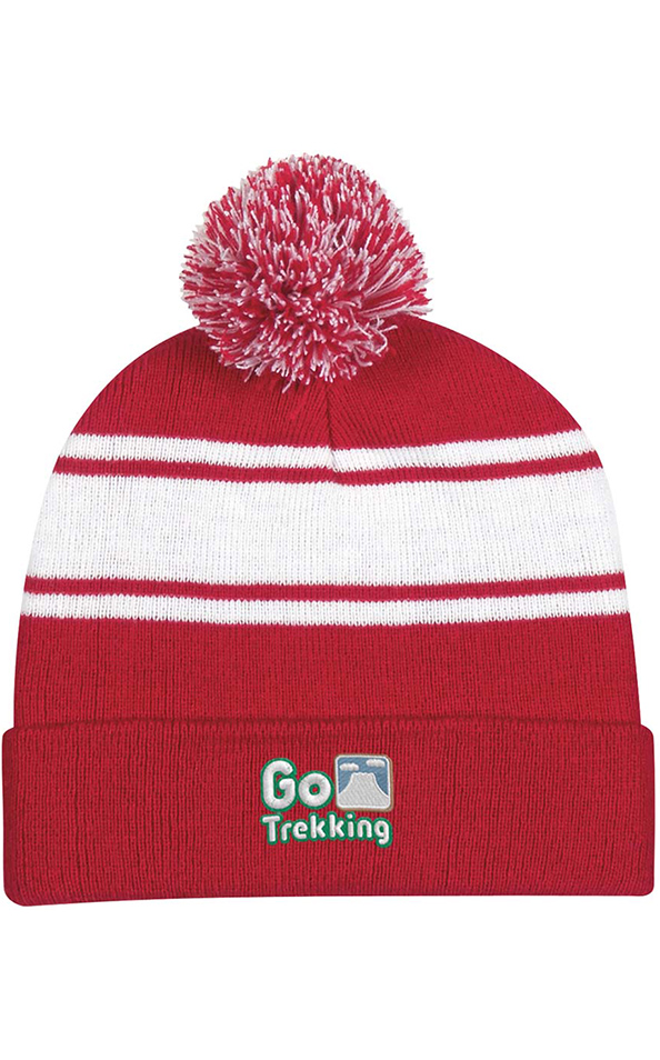Two-Tone Knit Pom Beanie With Cuff