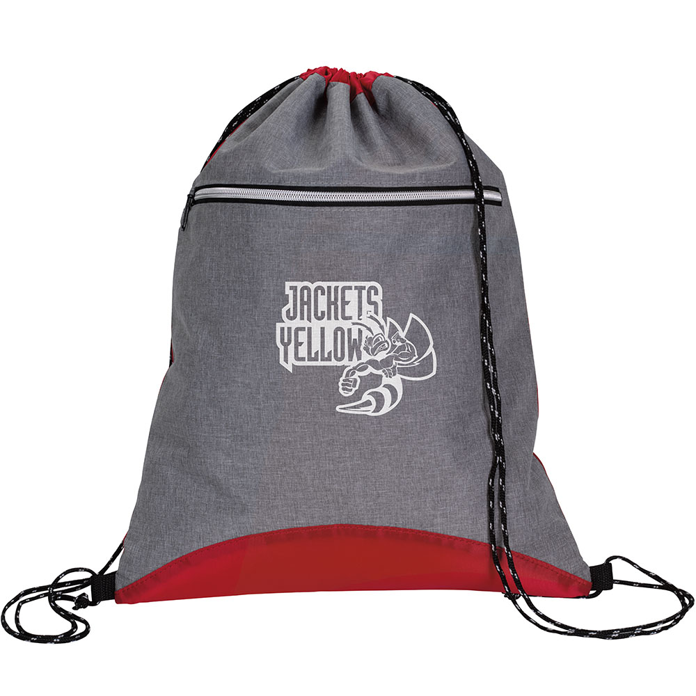 This lightweight drawstring backpack is perfect for any event such as concerts, tailgates, festivals, and a lot more! Drawstring closure. Front zippered pocket. Color accent on the front and entire back side of the bag. Printed drawstring cords. PRODUCT MATERIALS: 210D Polyester