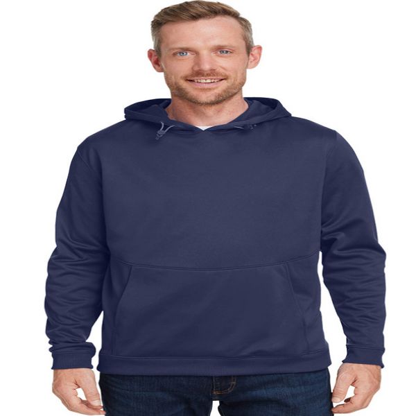 Fabric: 100% polyester, 200g Poly Knit. UA Storm technology repels water without sacrificing breathability. Armour Fleece is light, breathable & stretchy for warmth that still lets you move. Feature: Soft inner layer traps heat to keep you warm & comfortable. Bungee adjust hood. Front pouch pocket. Ribbed cuffs and bottom hem. Loose, fuller cut for complete comfort. Deco Eligible. Price includes one color, one location imprint.