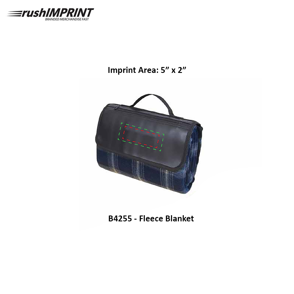 12" W x 5.5" H (closed). 180 Gram Fleece with PVC waterproof backing. Koskin front flap with zippered pocket. Fold down to carry easily with webbed carry handle. Great for camping and picnics. Debco's only blanket with a deboss decorating option. Price includes one colour imprint, one location.