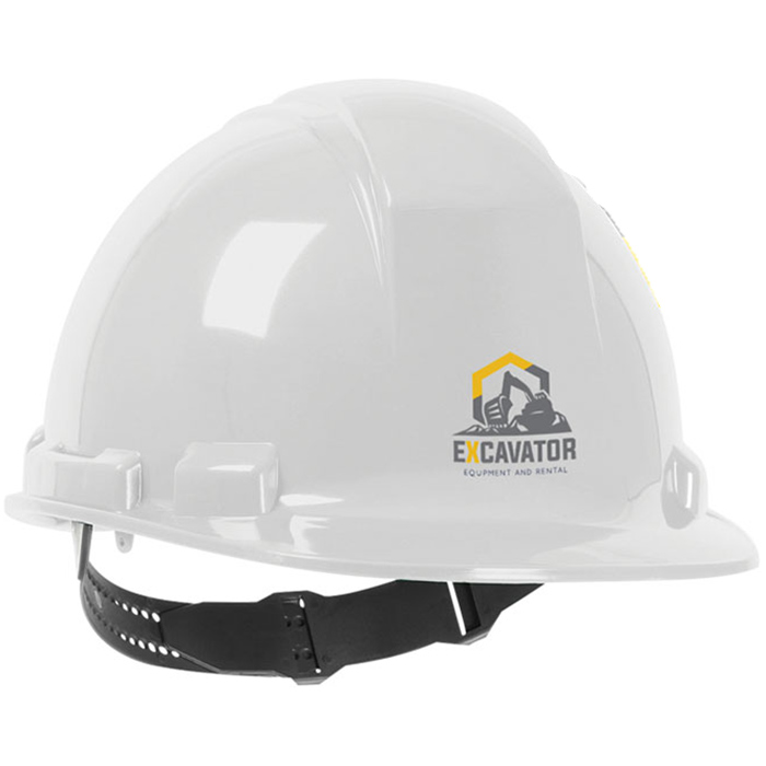 Meets ANSI/ISEA Z89.1 Type 1 and CSA Z94.1 Type 1 requirements. Fulfills Class E Electrical Insulation requirements. Lightweight shell made with UV stabilized High Density Polyethylene (HDPE) reduces worker fatigue. 4-Point quick release suspension with strong textile straps and crown comfort pad provides a comfortable and secure fit. Pin-lock adjustment system with easy to read hat sizing marks. Precise height adjustment settings to ensure proper depth. Low nape strap provides a secure fit, allowing the hard hat to stay on your head even when workers are looking down or bending over. Non-chaffing, replaceable foam sweatband for maximum sweat absorption. Shell has a rain trough for extra convenience in adverse weather conditions. Universal accessory slots accommodate a variety of eye, face and hearing protection products. Made in Canada. Price includes one colour, one location imprint.