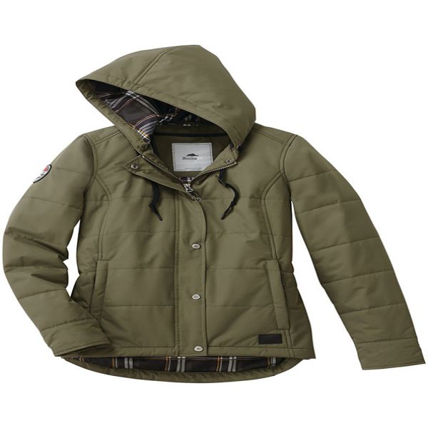 The Gravenhurst Insulated Jacket is a stunningly stylish look for late fall and early spring, providing you with lightweight warmth. In addition to a breathable, waterproof membrane for protection from the elements, the comfy Gravenhurst features exquisite styling, starting with horizontal channel quilting and a snap center placket concealing a zipper with a mitten-friendly zipper pull. No detail on the Gravenhurst has been overlooked, from the faux leather drawstring grab on the attached hood to the brushed plaid lining and elastic hem drawcord. With Roots73 branding to complete the look, the Gravenhurst is certain to command attention for any brand. OUTERSHELL: 100% Polyester dobby woven with waterproof (8000mm), breathable membrane (600 g/m2) and water repellent finish, 105 g/m2 (3.1 oz/yd2). LINING:100% Polyester taffeta sleeves. 100% Polyester brushed tricot knit pocket bags. INSULATION: 100% Polyester soft fill body, 100 g/m2 (3 oz/yd2). 100% Polyester soft fill sleeves and collar, 80 g/m2 (2.4 oz/yd2). Price includes embroidery.