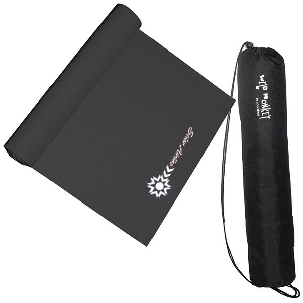 24" W x 66" H (mat). 5" Dia. x 26" H (carry bag). 4mm thick PVC yoga mat. Polyester carry bag. Carry bag has drawstring closure that can also be used as a carry strap. Roll up and secure with two elastic bands to keep mat closed when not in use. Mat is intended for yoga practice and is not to be used with footwear. Decoration standard on Bag available on mat for additional charges please call Customer Service. Price includes one colour, one location imprint.