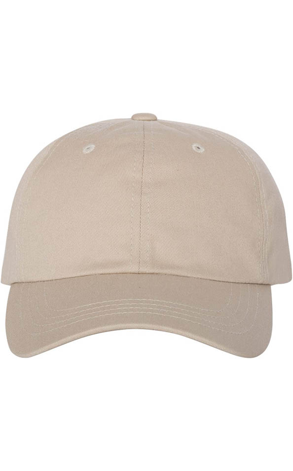 Fabric: 100% cotton. Green camo is 65% polyester / 35% cotton. Feature: 6-panel, Low-profile. Four-row stitching on visor. 3 1/8" crown. Unstructured. Matching undervisor. Antique brass buckle closure.