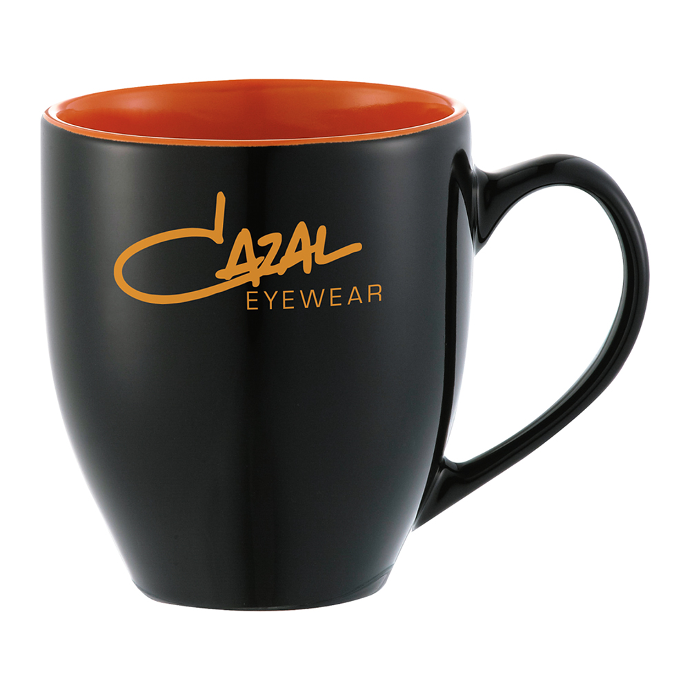 The Zapata 15oz Electric Mug is a large handle mug with a stylish interior color accent. See General Information page for special ceramic item handling charge. Hand wash only and follow any included care guidelines. Microwave Safe. Material: Ceramic. Price includes one color, one location imprint.