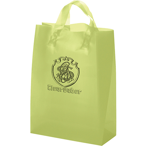 Get a high-impact retail look with this colorful hi-density 3.0 frosted color plastic bag. Features fused loop handles and cardboard bottom insert. Price includes one color, one location imprint.